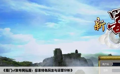 在网游领域,蜀门私服作为一种独特的游戏模式,一直备受玩家关注。蜀门sf发布网私服作为其重要的发布平台,不仅为玩家提供了丰富的游戏体验,更在运营和玩法上展现出了独特的魅力。本文将围绕蜀门sf发布网私服展开讨论,深入分析其特色玩法及运营策略。 蜀门sf私服以其独特的游戏机制和丰富的玩法吸引了大量玩家。...